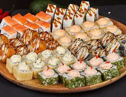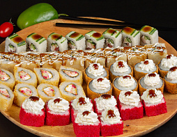 5 порций/40 кусочков: Кани темпура, Оранж чикен, Дабл краб, Грин чикен, Ред вингс