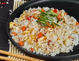 Рис, омлет, перец болгарский, морковь, помидоры, зеленый лук